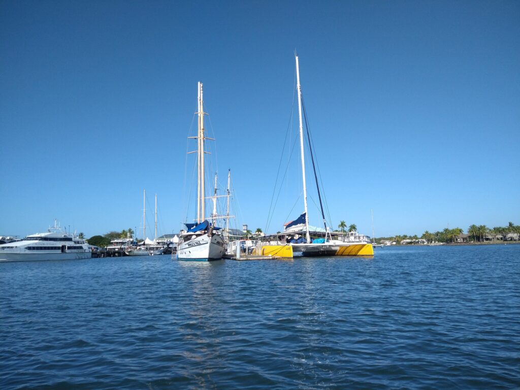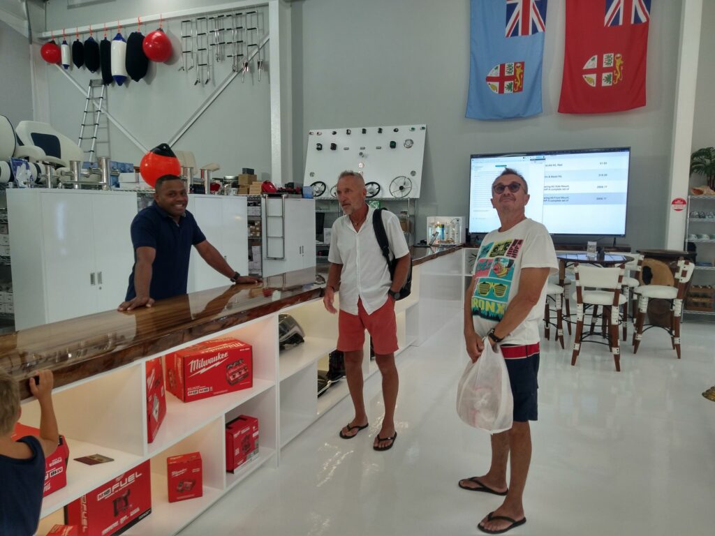 Letzte Einkäufe in der Marina Denerau und dann gehts los. Es hat doch ein bisserl mehr gewackelt draußen 😉. Bleiben daher lieber noch ein Nacht vor Anker in Fiji( sicherheitshalber).