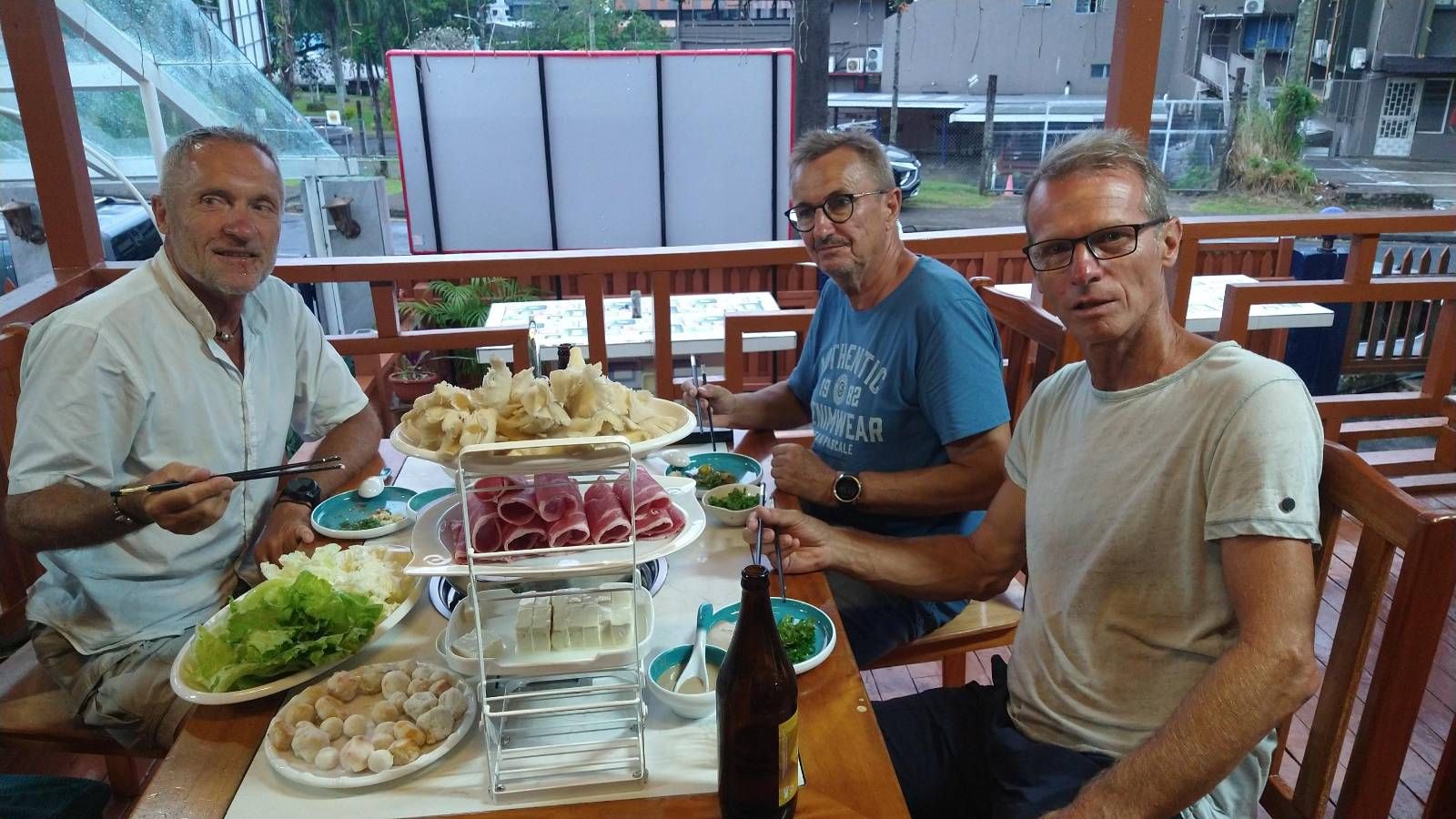 Die haben wir dann am Nachmittag auch erkundet und „ergangen“. Wir sind natürlich am richtigen Tag in der Hauptstadt angekommen – die haben heute ihren Nationalfeiertag (Unabhängigkeit) in großem Stil auch im großen (Albert-) Park der Stadt gefeiert. Also Segel reparieren war nix – erst morgen.. Dafür haben wir am Abend einen herrlich heißen und scharfen „Hot Pot“ bei einem Chinesen genossen. War echt gut und jedenfalls ausreichend!
