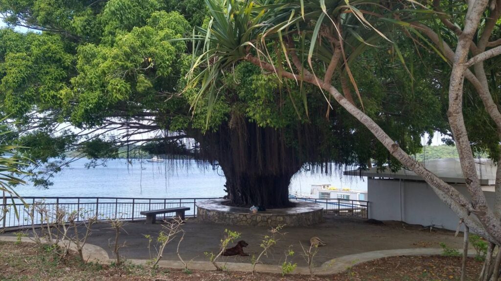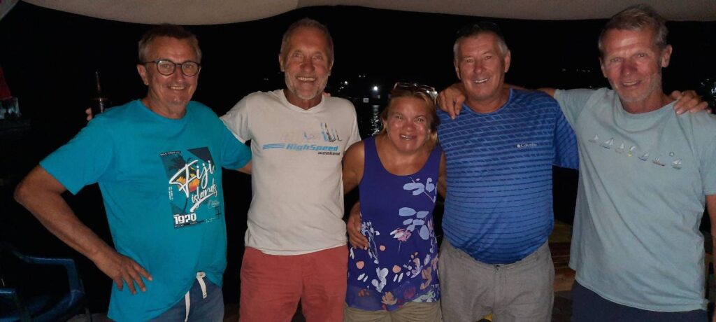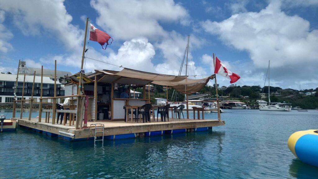 Hallo nach Europa, wir treffen hier letzte Vorbereitungen (Wäsche waschen, Schiff putzen, Vorräte ergänzen…) für die große Überfahrt Richtung Osten die wir, so wie die derzeitige Vorhersage aussieht, am Samstag früh starten werden. Morgen nachmittags klarieren wir aus, bunkern noch Diesel nach und dann werden wir noch einmal, dann illegalerweise in der Bucht wo wir jetzt sind – Port Maurelle – übernachten und Samstag früh dann Richtung Norden und dann Richtung Westen losstarten. Zum Glück sind auch die Seenomaden da, Doris kennt sich aus hier und hat uns das Wichtigste gezeigt und erklärt. Auch alte Bekannte (Marc und Donna) die ich noch in Maupiha’a, also vor zwei Monaten noch in Französisch Polynesien kennen gelernt habe, habe ich zufällig hier wieder getroffen in der Wasserbar – siehe Foto.